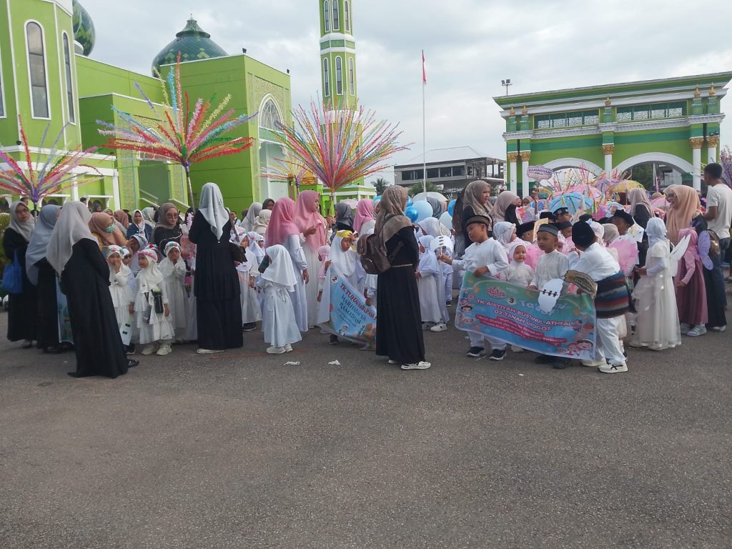 Pawai yang diikuti ribuan siswa TK/ PAUD di Kecamatan Tanah Grogot ini dimulai di halaman Masjid Agung Nurul Fallah berjalan menuju Siring Kandilo melewati Plaza Kandilo dan berakhir di halaman Masjid Agung.