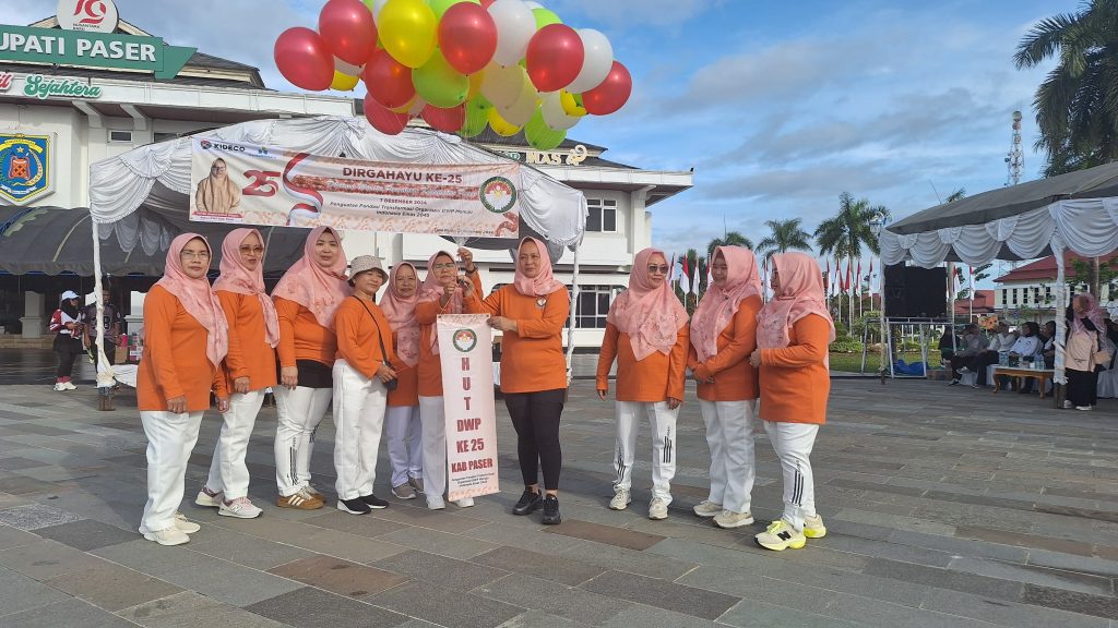 Tana Paser – Dalam rangka memperingati Hari Ulang Tahun ke-25, Dharma Wanita Persatuan (DWP) Kabupaten Paser Gelar Senam Sehat di Halaman Kantor Bupati Paser.